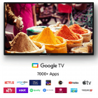 Smart TV Features: Google TV | Watchlist | Voice Search | Google Play | Chromecast | Netflix | Amazon Prime Video | Additional Features: Apple Airplay | Apple Homekit |Alexa