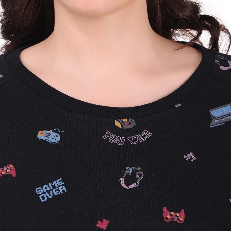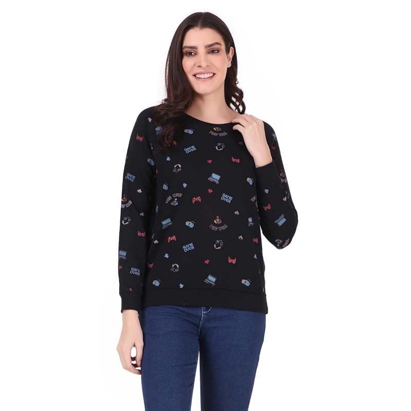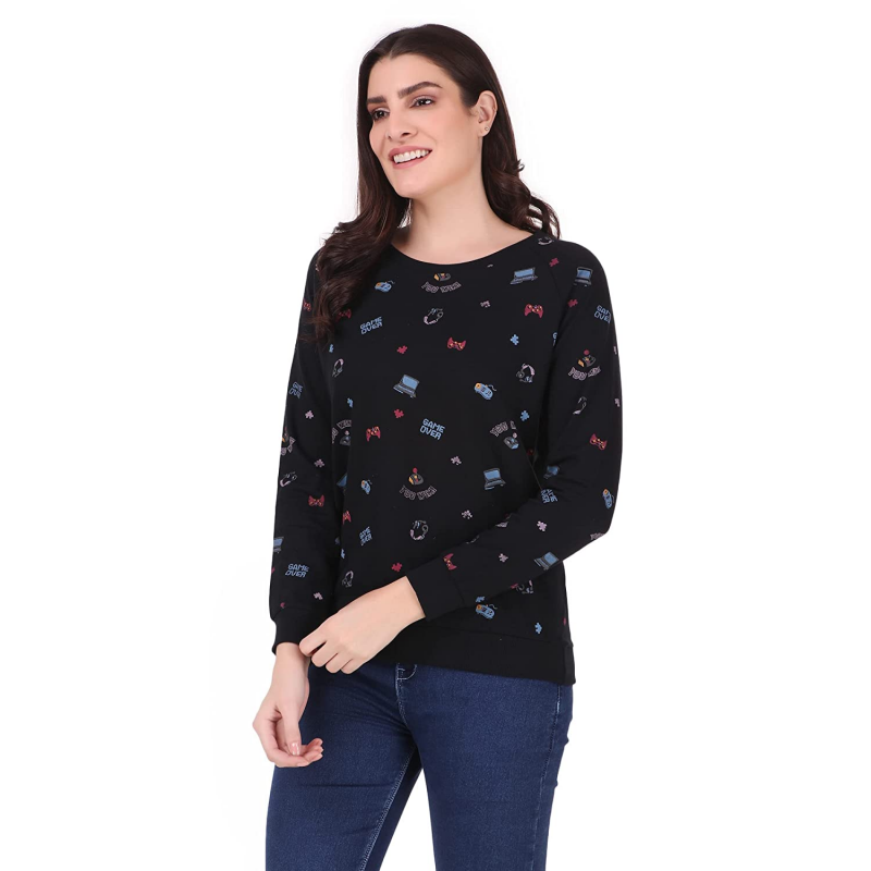 • This Ladies Casual sweatshirt features an over-graphic print, Raglan sleeves, and a round neck. Fabric: 100% Combed Cotton, 300 GSM. No Pilling effect and color fading even after Multiple Washes and repeatedly use.