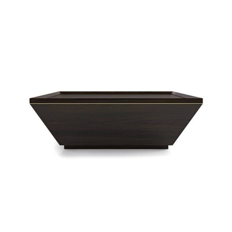 • Art inspires art. The Taarkashi range is our ode to the Indian handicraft of taarkashi - fine metal wires worked into wood. This coffee table is a vision in rich wood and warm brass. The unusual trapezoidal form plays hero, while a delicate line of brass gently frames the table.The elegant table top, with chamfered edges, acts as a serving station for beverages. Perfect for the contemporary sophisticate.