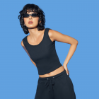 Style a fashion-forward look with this Women's Black Sleeveless Rib Crop Top. Pair it with skinny denim and flats for a casual look.