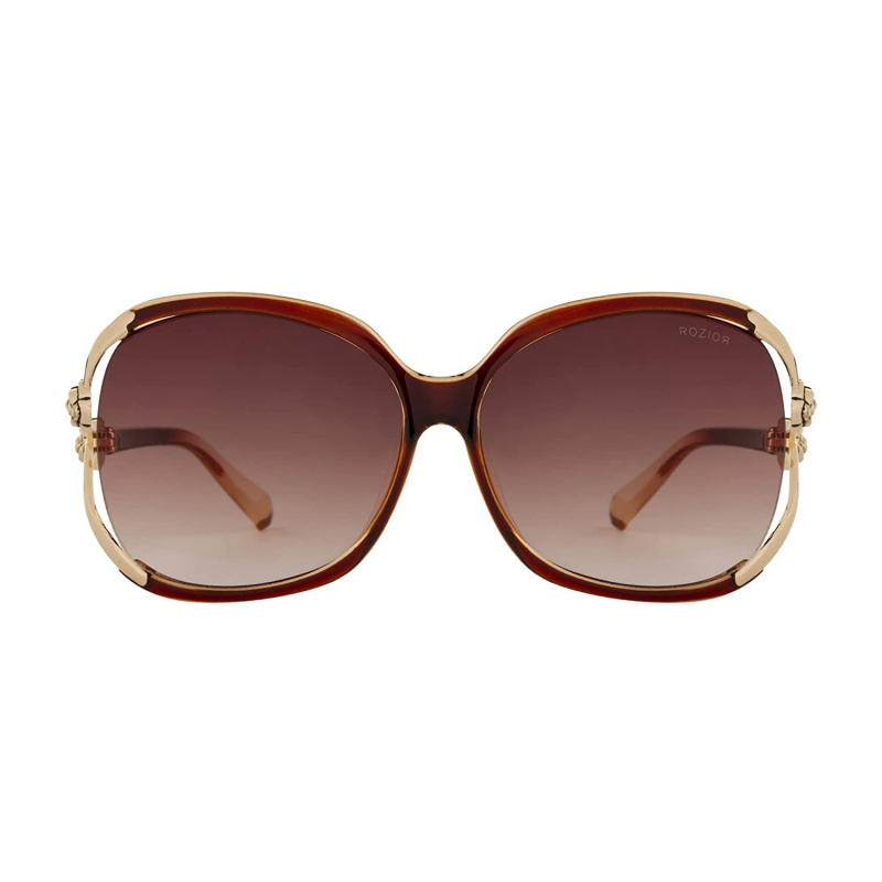 MODEL: RSU9825C1 || SIZE: Large Oversize || FRAME: Glossy Brown Alloy || LENS: Brown AC-Acrylic