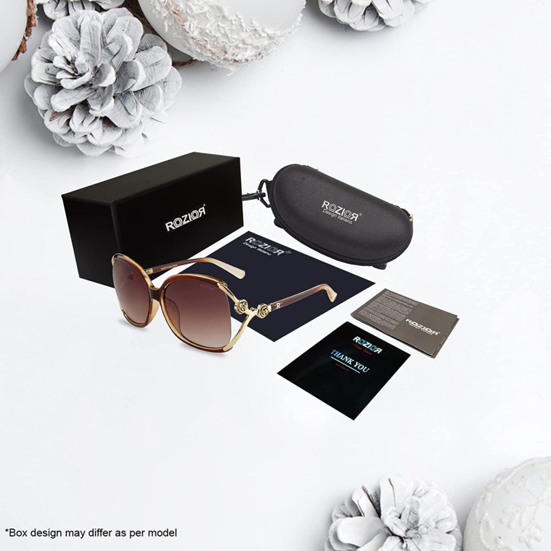 PACKAGE INCLUDE: 1xRozior Sunglass, 1xSunglass Branded Sunglass Case, 1xGift Box, 1xBranded Fibre Cleaning Cloth, 1xUser Manual, 1xWarranty Card. 100% Authentic Rozior Brand Sunglass with Product ID Verification & Warranty registration on Rozior official website.
