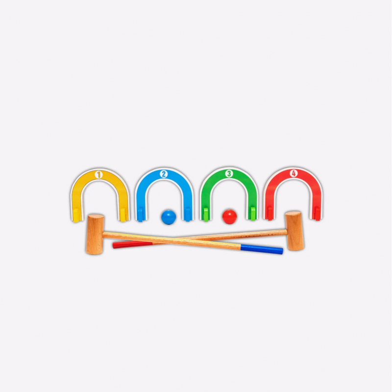 • This 8-piece colourful croquet set made from non-toxic, safety-tested and kids-friendly material.