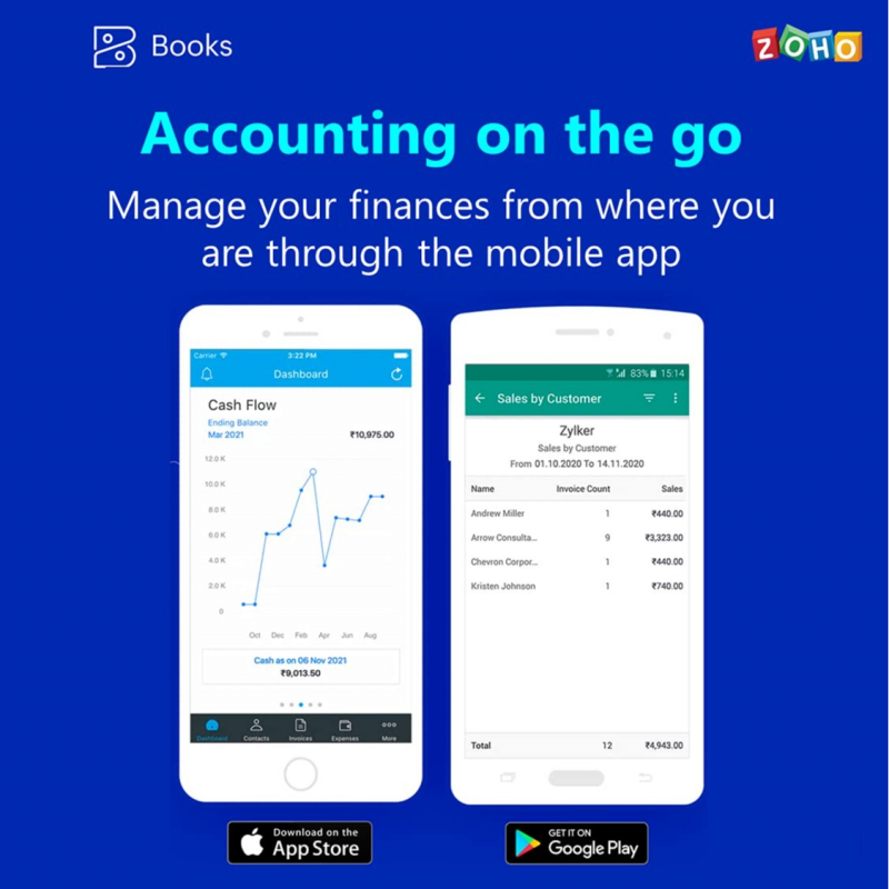 Manage your business finances on the go, track your inventory and handle mundane accounting tasks effortlessly with Zoho books